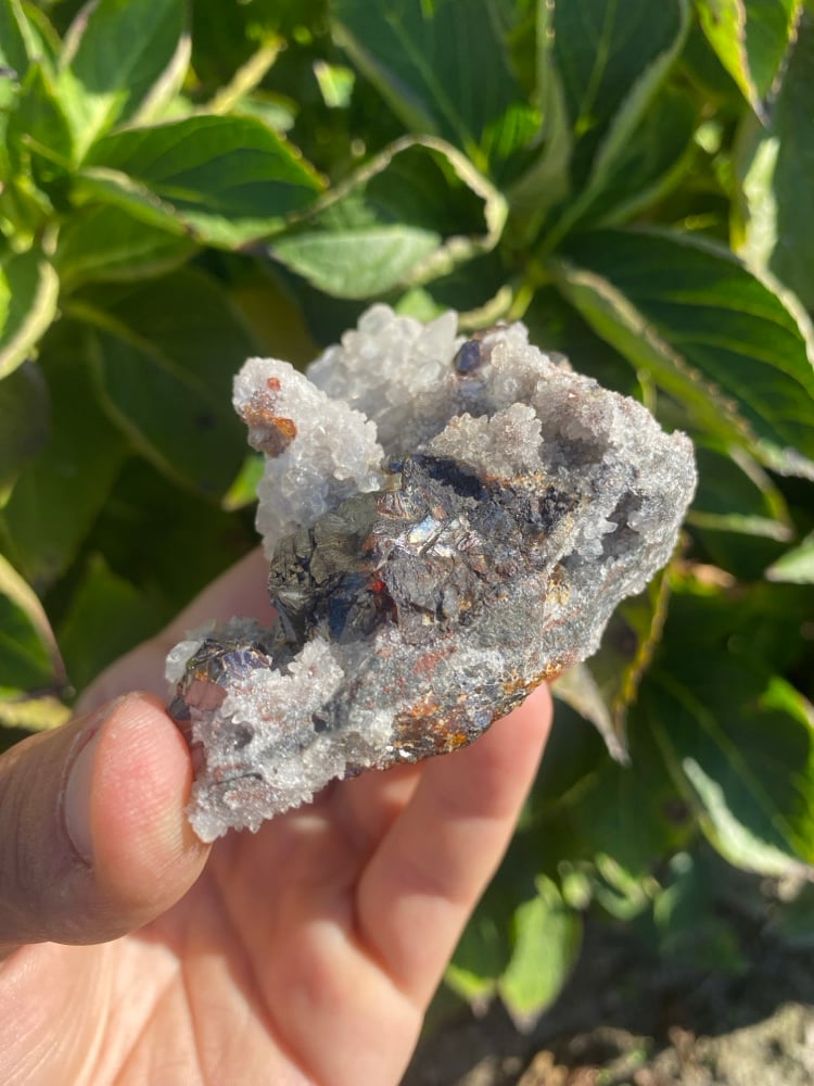 Gemmy red sphalerite with druzy quartz that displays beautiful red hues inside it on a heavy shiny galena matrix